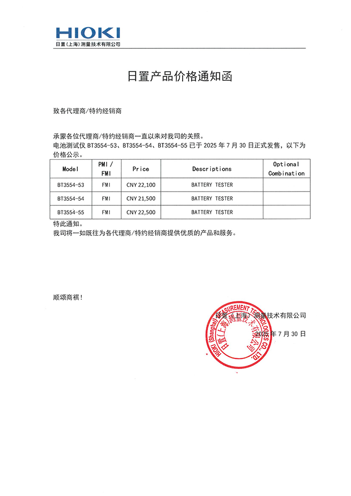 电池测试仪BT3554-53、BT3554-54、BT3554-55于2025年7月30日发售。